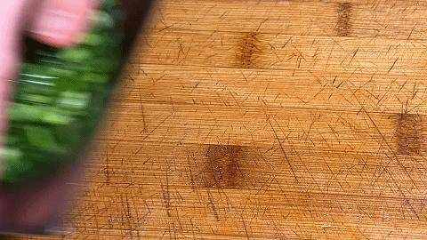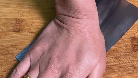 5.將肉餡用刀剁一下,剁得細一點