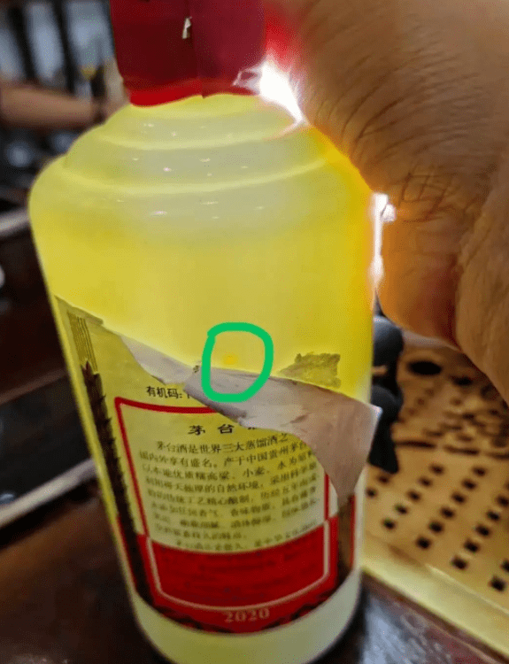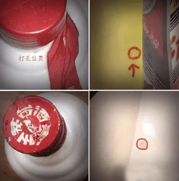你回去的時候,要仔細看看瓶蓋和瓶體,你會發現有一個黑點或其他類型的點,擦去黑點,然後露出針孔。歸根結底,這是不良酒販提取茅臺真酒,然後註射假酒進去的。