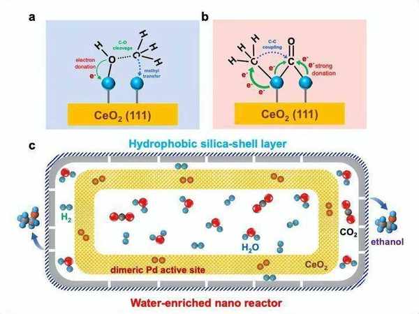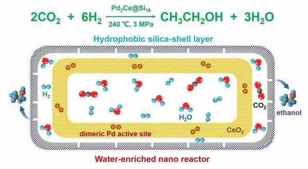 報道中稱劉小浩團隊創新性地采用結構封裝法構築瞭納米“蓄水”膜反應器,內部封裝瞭二氧化鈰載體分散的雙鈀催化劑,結構如同膠囊,其殼層具有高選擇性,經疏水修飾後,可保證生成的水集中到內部,產出物乙醇可以則溢出,把溢出的乙醇收集起來就能得到高濃度的酒精瞭。
