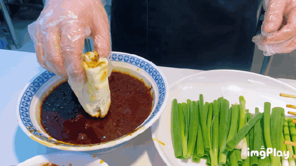 側邊蘸上秘制的醬料