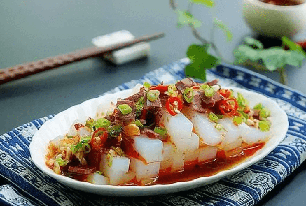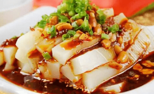 首先,我們需要準備一定量的涼粉,並將其剪成小塊狀。為瞭讓涼粉口感更好,我們可以先將涼粉用清水洗幾遍,這樣涼粉會變得更美味可口。