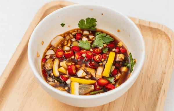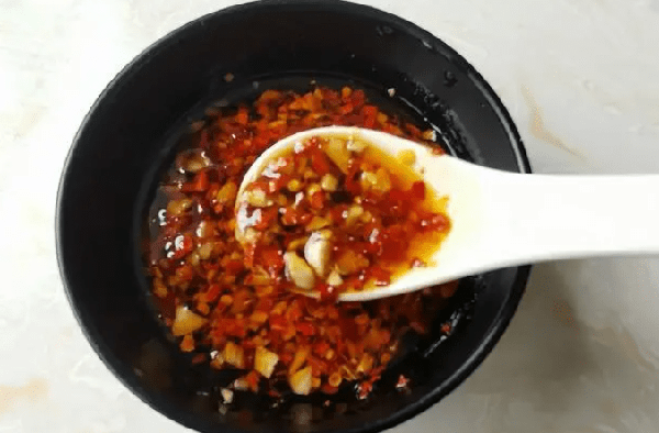 接下來,我們需要準備一個小碗,將紅油辣醬、蒜泥、生抽、糖、鹽、雞精、醋油等調料放入碗中,並加入適量的水攪拌均勻,這樣就能制作出我們的酸辣汁瞭。