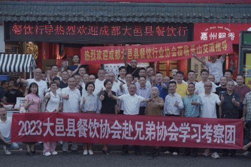 2023年5月16日,由大邑餐飲協會組織的六十名餐飲行業企業傢,對樂山市美食行業進行瞭一場深度的考察、學習。樂山市餐飲協會會長龔芬,常務副會長、嘉州飄香麻辣燙創始人宋霞等負責本次考察的接待工作。