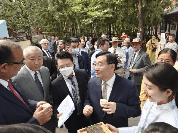 5月15日,由文化和旅遊部主辦的“茶和天下”·雅集活動啟動儀式在北京恭王府博物館舉行。文化和旅遊部部長胡和平出席並宣佈活動啟動。包含16位駐華大使、2個國際組織代表在內的41個國傢和國際組織的75位駐華外交官,文化和旅遊部、外交部、國資委等相關部委、部分地方政府、文博機構、行業協會、中資企業代表近200名中外嘉賓參加活動。