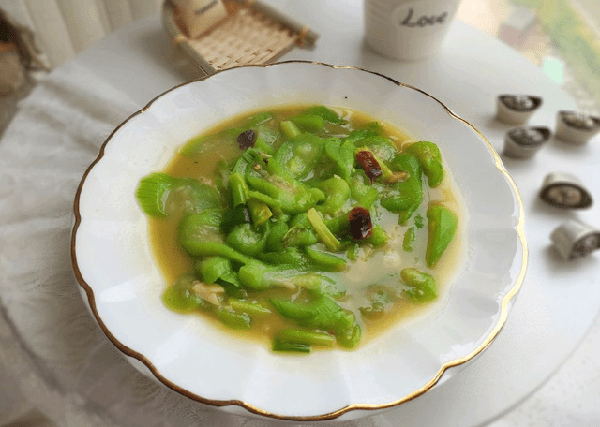 下面是制作步驟:先洗凈絲瓜,去掉兩端,將絲瓜切成絲狀備用。鍋中放油,燒至七成熱放入蔥薑,翻炒香後放入絲瓜絲,加少量鹽、味精和清水,大火翻炒約2分鐘即可出鍋。