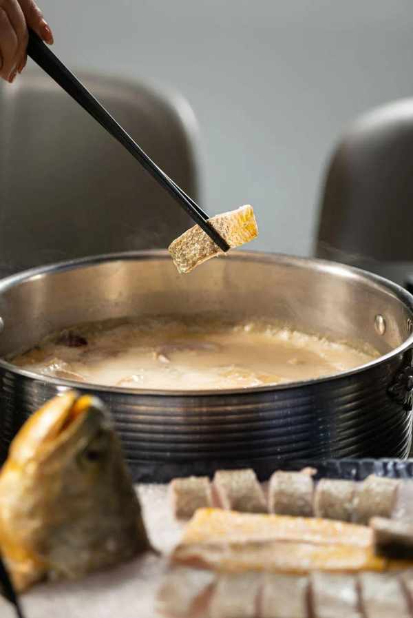 優選中鹿島大黃魚,體態肥美、色澤金黃,肉質鮮美滑嫩。入鍋隻需要涮三五分鐘就要出鍋,這時候才是肉質最鮮美的,可以不蘸任何調料直接吃出魚肉的本味,如果蘸調料可以試一下醬油配芥末,有很特別的口感。