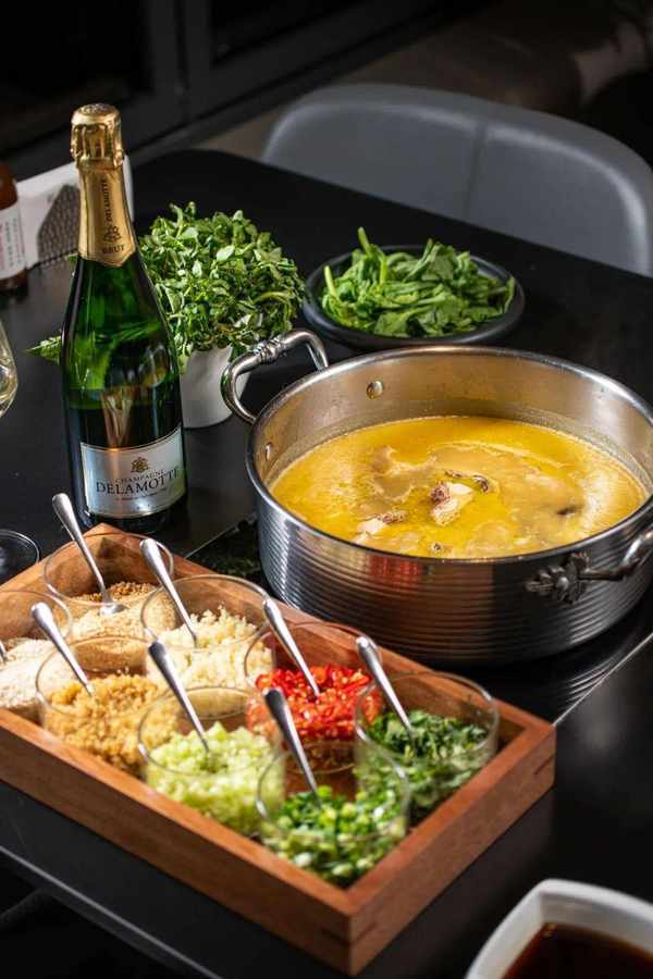與強調湯底香味的川渝麻辣火鍋不同,廣式打邊爐本身並不復雜,吃的就是食材。湯底無疑是現代港式火鍋的重頭戲。店內每日凌晨開始熬制當日高湯,除瞭必要的食材以外,不做任何額外的添加。不同的湯底,有不同的熬制時間和方式,雖然費時費力成本高,但卻更好地保證瞭品質。鮮入唯煮大部分的湯底,都涵蓋瞭豐富的食材。開鍋以後先喝湯,自帶的食材就已經吃得非常滿足。
