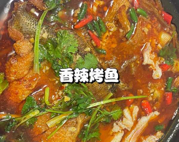 3、鍋底加入洋蔥,配菜轉移到砂鍋裡,煮開就關火,放上煎好的鱸魚;撒上孜然,蒜末,青紅椒,潑上熱油(煎魚剩的油),點綴上香菜出鍋