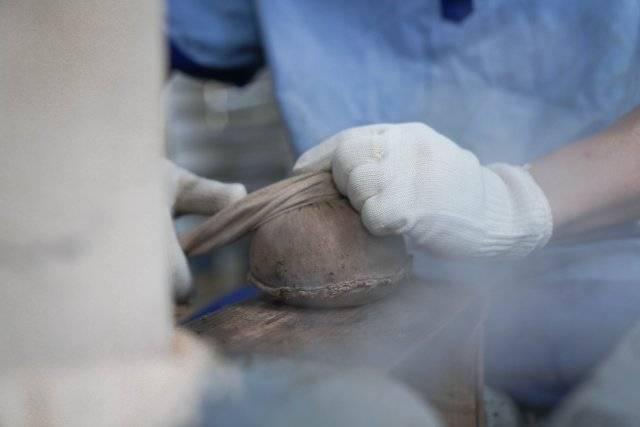 出師後,解傑和其他揉茶師一樣,加入瞭3人一組的沱茶制作流水線。揉茶是下關沱茶制作技藝中必須依靠人工操作的一步,無法用機器替代。工廠龐大的出貨量,讓每位揉茶師每天都要面對反復3000多次燙手的揉茶,但解傑一點也不覺得枯燥乏味。
