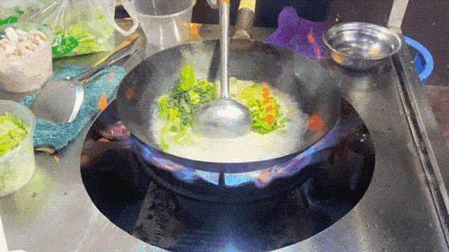 想吃口熱乎的,這傢噴泉牛雜滿足你,牛心、牛肝、牛肺、牛肚、牛百葉、牛肉丸...各種牛雜沿著鍋圍成一圈,熱氣騰騰的模樣,食欲瞬間就被拉滿瞭。
