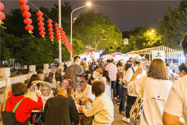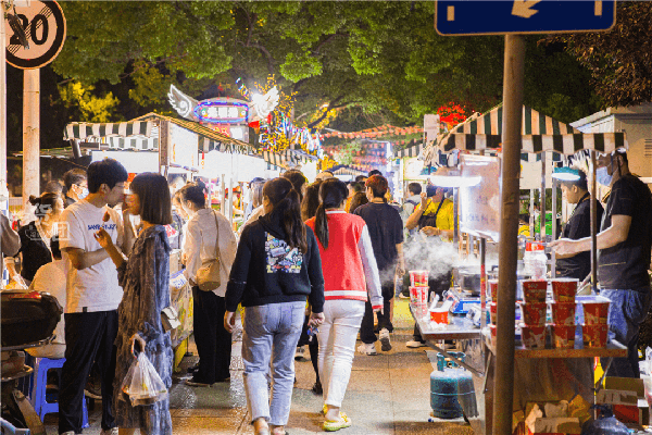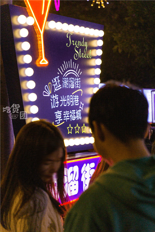 短短的距離,想來無法滿足日益增加的覓食人流,連著光明港夜市,新開的 “潮溜街”也亮起瞭五光十色的燈光, 長達1000米,目測200+攤位的超級夜市來瞭,這規模福州再也找不到第二傢。