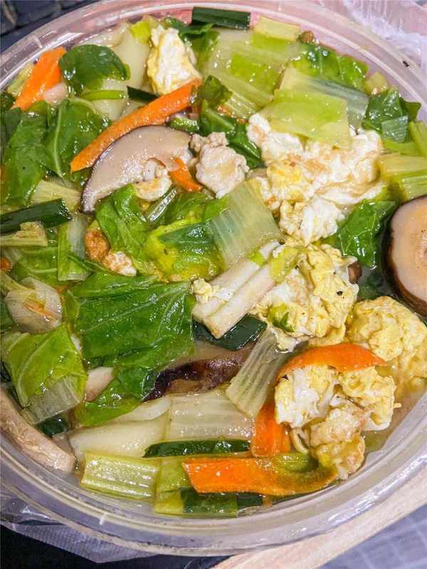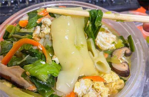 就是很平常的煮面手法,加入蛋青菜香菇和些許肉,味道卻很是鮮香,蛋燕吸汁後非常入味,入口滑溜,在嘴裡QQ彈彈的口感,加上各種料大口咀嚼,好吃的很。