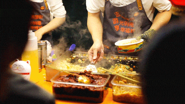 年輕的情侶、帶著孩子的寶媽寶爸、上瞭年紀的老夫妻、結伴而行的同學們同事們,還有一人獨行的單身狗,在人聲鼎沸的夜市街頭,都有著共同的快樂,享受美味的快樂。