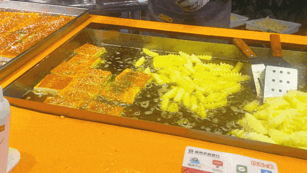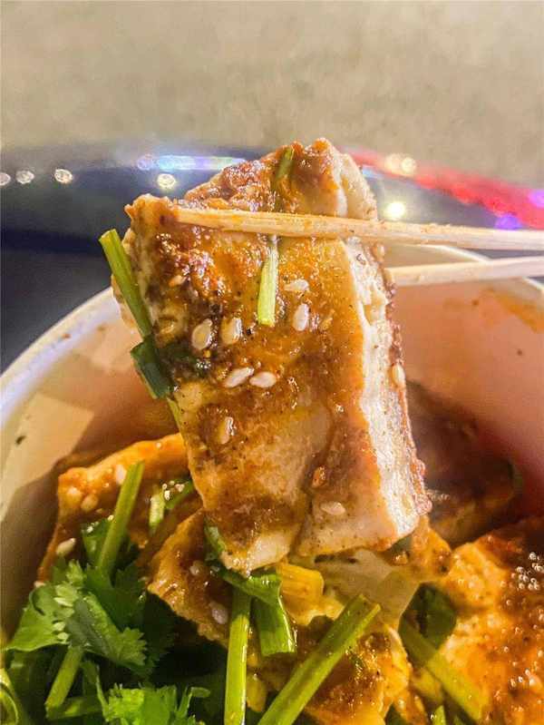 在很多夜市吃過狼牙土豆鐵板豆腐,很多人都喜歡搭配著吃,因為我不喜歡土豆,所以每次都隻點鐵板豆腐吃。鐵板煎的豆腐香得很,外皮帶點酥脆,內裡卻很柔嫩,加上各種調料的口感加持,是令人停不下嘴的味道。