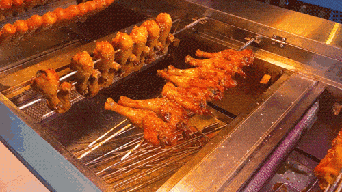 肉食動物每次見到烤雞攤都忍不住停下腳步,雞腿、雞翅、大肉腸、豬蹄...全是肉肉肉肉在架子上旋轉烘烤,肉香味香飄十裡瞭都,路過就是一個饞。