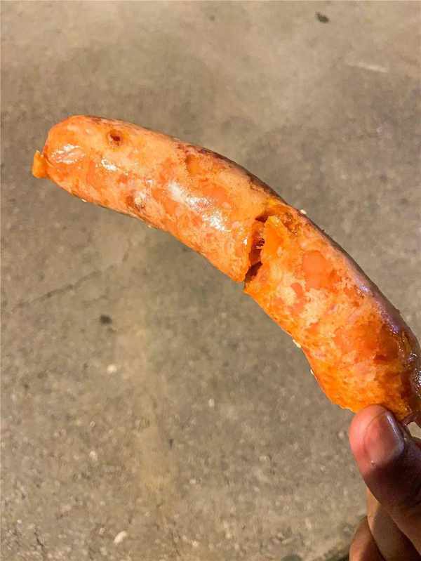 少瞭炸雞腿的酥脆外皮,烤雞腿讓我擁有瞭直攻雞腿肉的機會,扯下一口雞肉,嫩香中帶著嚼勁的口感,會吃的停不下。肉腸的size實在大,吃起來肉味十足,一根炫完管飽。