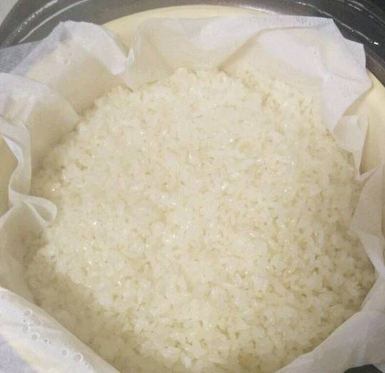 首先我們要把糯米提前一天泡上,泡好的糯米,放到屜佈上隔水上鍋蒸,蒸好後給它搗爛,看不見糯米粒就好瞭。