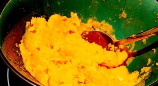 糯米制作好後就要來制作紅薯瞭,把紅薯清洗幹凈,要用到把紅薯皮去掉,不要蒸好後再去皮,這樣會很麻煩,同樣的要放到鍋中蒸,蒸熟後搗成紅薯泥就可以瞭。