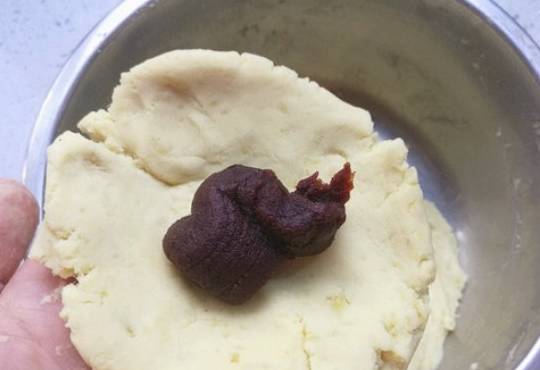 接下來我們要把弄好的糯米和紅薯揉搓在一起,揉搓好後分成等量大小的面劑子,按壓成餅狀,在裡面放入適量的豆沙餡,在用包包子的手法包好後,在按壓一下,要是傢有面包糠,就用面包糠把小餅包裹起來,這樣吃起來口感會更好,要是沒有,換上芝麻也是可以的。