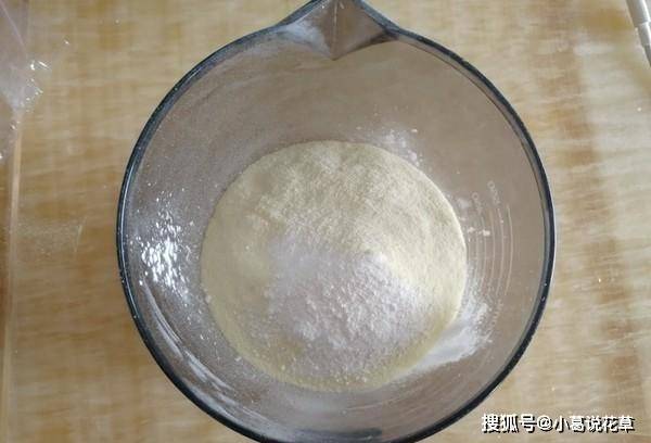 4.馬鈴薯淀粉、低粉、奶粉、泡打粉混合,用矽膠刮刀拌勻。