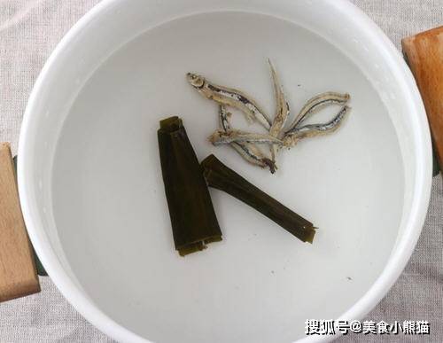 5、將小魚幹及昆佈撈出。