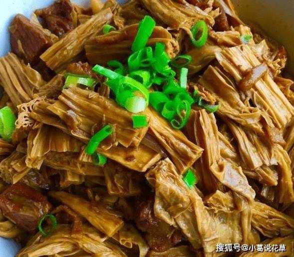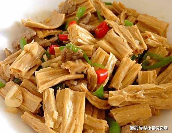 它就是腐竹,也被稱為肉食動物的肉。腐竹營養豐富,屬於豆制品。它由大豆和其他成分制成。它也是一種脫水豆制品。食用時,泡腐竹一定要加水,泡後炒或涼拌。腐竹含有豐富的礦物質,尤其是鈣質,不僅可以促進骨骼強健,還具有健腦益智的功效。兒童和老人應多吃。具有保肝、清熱解毒、潤肺止咳的作用。