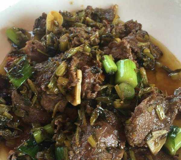 下面再放入豬血進去將其煸炒一會,而後再加入咸菜、並淋入少許的黃酒,並加點鹽和蠔油進行調味,將其拌勻後就可以出鍋瞭。