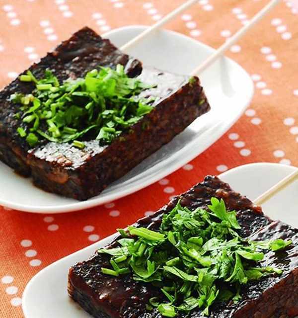 待其味道全部鹵進去後,就可以取出來放涼瞭,是可以食用的哦,還可以再下鍋進行油炸著吃,而在吃的時候用一點豬血糕沾醬,味道會更佳。