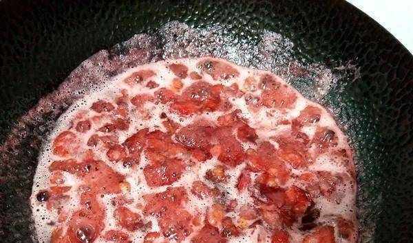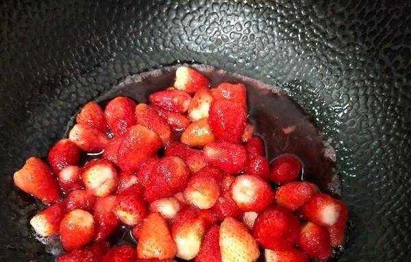 3.草莓水醃好後,放入無水無油的鍋中燒開