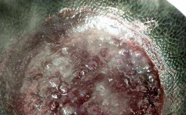7、慢慢變粘稠就可以瞭。記得不停攪拌。最後接鍋最容易。