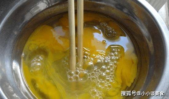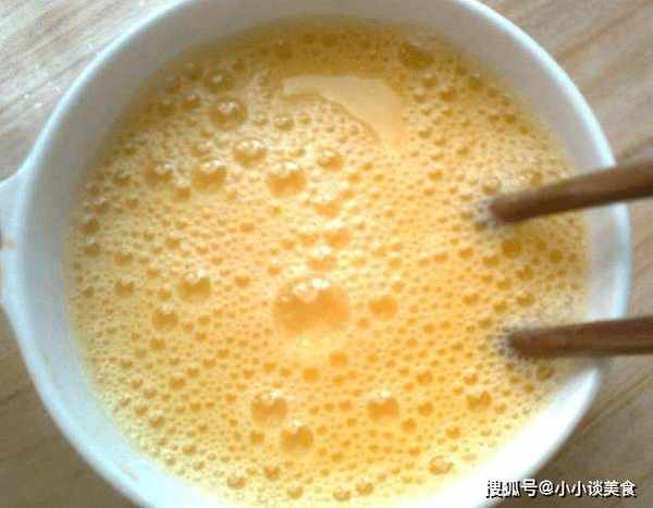 1.將雞蛋打入碗中。一定要註意打蛋的方式。垂直擊敗他們。這將更容易打破雞蛋的質地並減少氣泡。如果有泡沫,將其撇去。