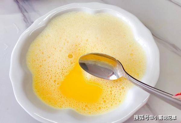 3、打雞蛋時用筷子順時針方向攪拌,讓蛋清和蛋黃充分混合,然後將溫開水勻速倒入蛋碗中,不停攪拌至蛋液和水混合,攪拌至濃稠表面形成一層泡沫。因為蛋羹是給寶寶吃的,有點清淡可口,所以我打蛋液的時候沒有加鹽,最後出鍋加瞭點生抽就可以瞭。