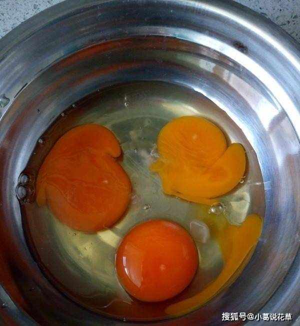 4.在碗裡打三個雞蛋。