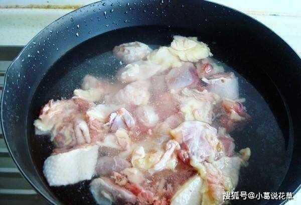 3.將本地雞塊用冷水焯一下。最好不要煮得太久。把它們打開一點。如果你看到有血泡沫冒出來,把它撿起來。最好將它們放入冷水中,這樣雞肉才柔軟可口。