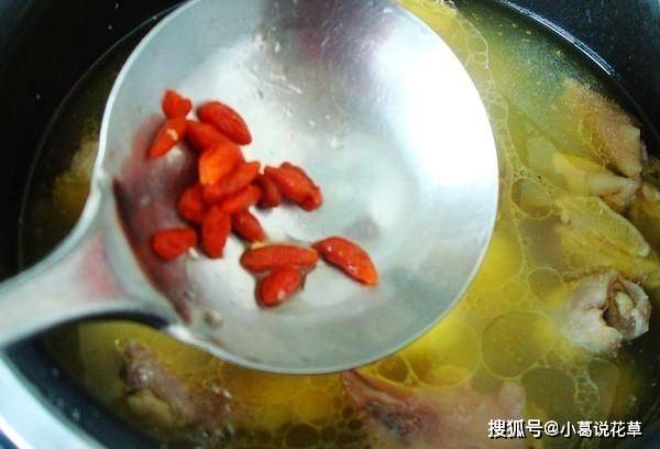 10、加鹽再次蓋上鍋蓋等時間到,煲湯功能結束,煮到跳到保溫,加入枸杞攪拌均勻繼續煲湯