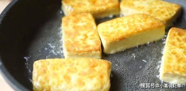 將豆腐煎至兩面金黃酥脆。煎豆腐的時候可以把鍋晃動一下,防止豆腐粘鍋。翻豆腐的時候要慢慢來,以免把豆腐弄碎。