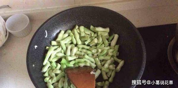 4、炒好後,倒入適量清水,將蕓豆炒熟。