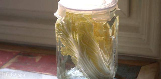 最後,將裹好鹵汁的大白菜放入瓶中,擠至瓶底,擰上蓋子,在室溫下醃制2天以上,即可食用。