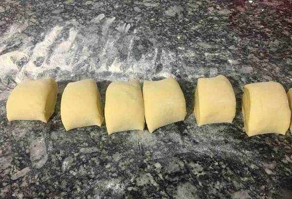 5、取出發酵好的面團,撒上少許幹面粉再次揉搓排氣;