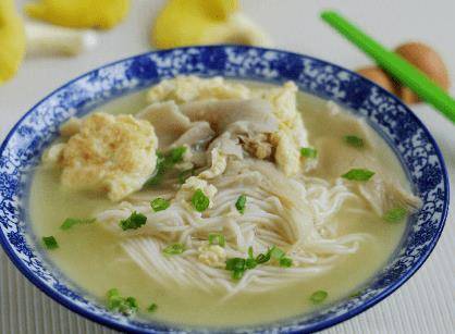 餘黃蘑高湯材料:豬肉、黃蘑、適量的油、鹽、蔥花