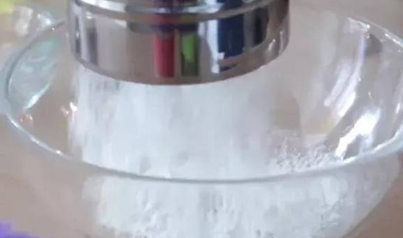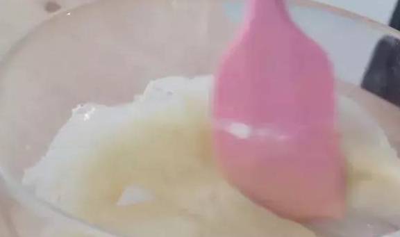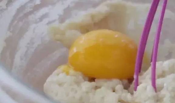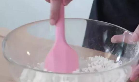 1.植物油微波爐加熱後,加入過篩的低筋面粉拌勻至無幹粉。