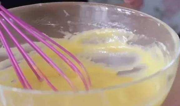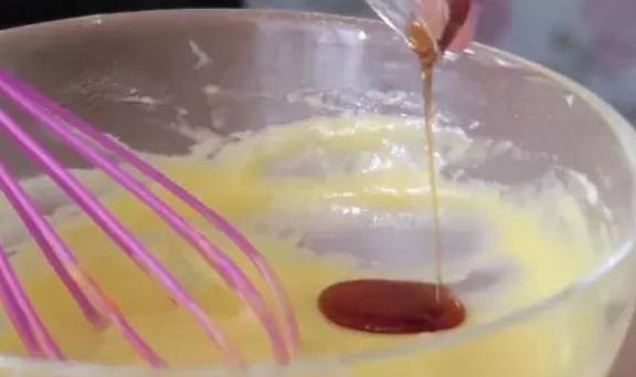 分次加入蛋黃和香草精攪拌均勻。