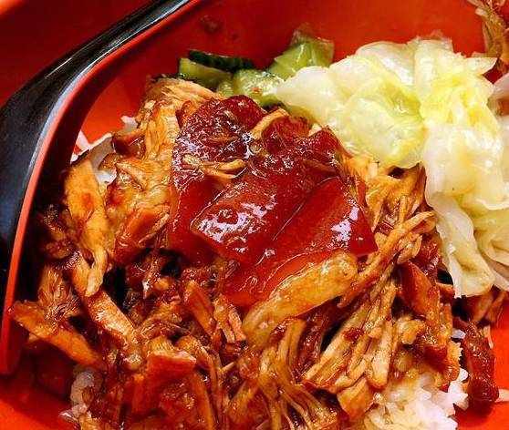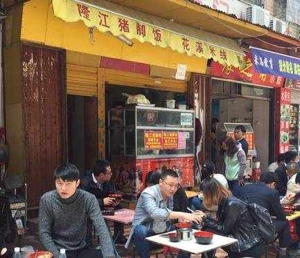 最喜歡吃隆江豬腳飯的還是女生,賣得最好的是“四點”,它中間有兩根骨頭,師傅一刀下去幹凈利落,豬腳被分開兩半後,一根骨頭連著筋肉,女生吃起來也非常方便。豬腳飯上桌之前必須再往米飯裡面澆一勺鹵汁,這可是豬腳飯的精華!