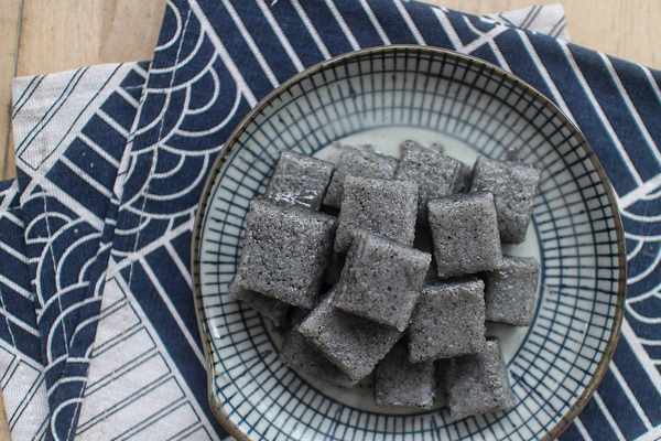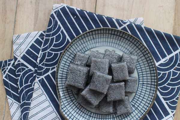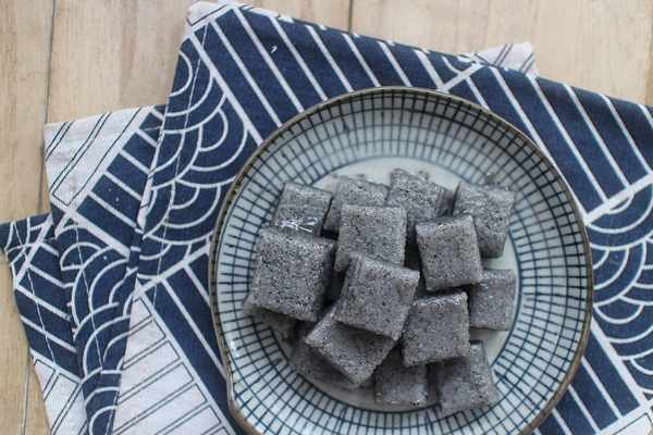 6、成品,煮好的黑芝麻冰糖米糕可以切成如圖所示的小方塊形狀,這樣吃起來一口一個很過癮,真心值得一試哦,