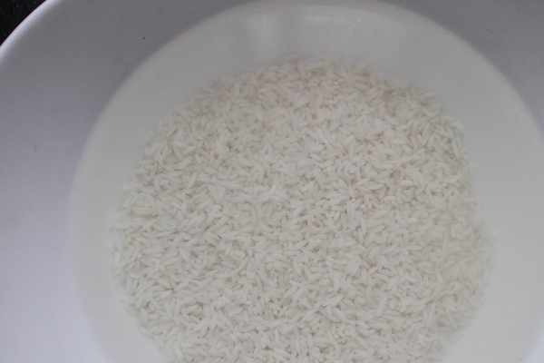 1、大米淘洗幹凈後倒入碗內,碗內再加入適量的清水,將大米泡一個晚上