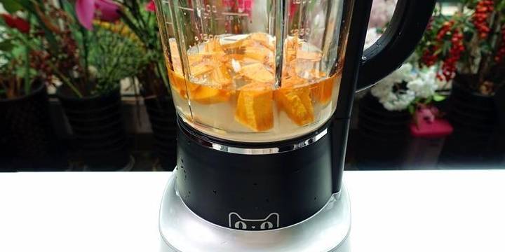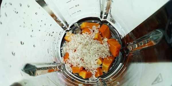 3.將大米和南瓜放入熱杯攪拌杯裡。