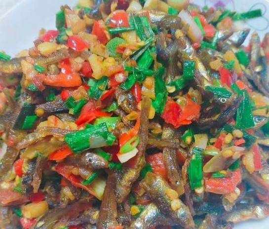 小炒野生河魚仔,李先生媽媽是農村的,都是小河裡撈上來直接烘幹,給他們寄來的土特產,沒有添加東西,吃起來格外香!