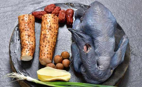 材料:山藥、烏雞、生薑、枸杞、料酒、鹽