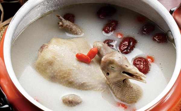 乳鴿清洗幹凈,之後往鍋中添水,水開之後放上乳鴿,再來點料酒和薑片,煮開鍋之後,把浮沫撇掉。接下來把紅棗、黨參放進去,蓋上鍋蓋燉1個小時以上。到時間後,放入鹽調味,加上幾個枸杞,攪拌一下,出鍋開喝。