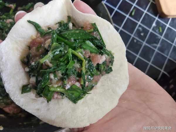 4.鍋中入油,下入花椒粒小火炸香,把花椒粒撈出後把油趁熱淋在山麻楂上,然後跟肉餡一起拌勻,包入搟好的包子皮中。